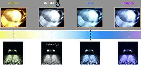 - Aspecto elegante: azul (8000 K) o morado (12000 K)