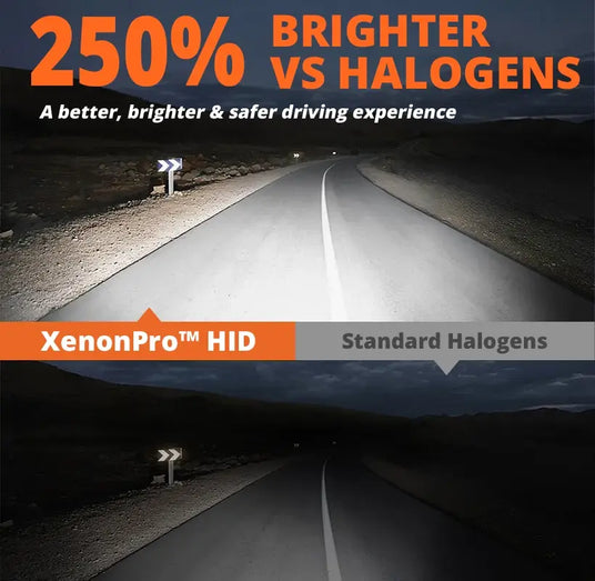 Compare las HID XenonPro ™ con las bombillas halógenas estándar.