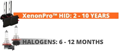 Nuestros faros HID duran mucho más que las bombillas normales, lo que le permite ahorrar tiempo y dinero valiosos .