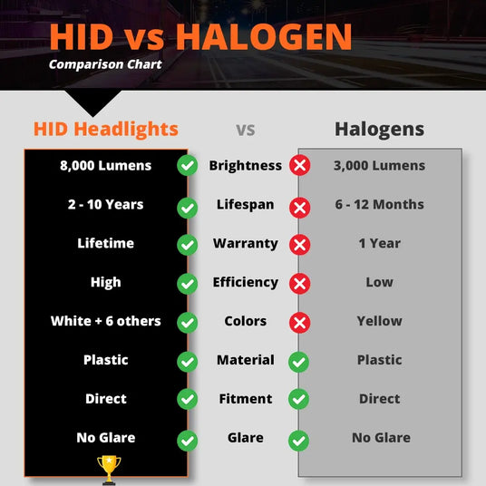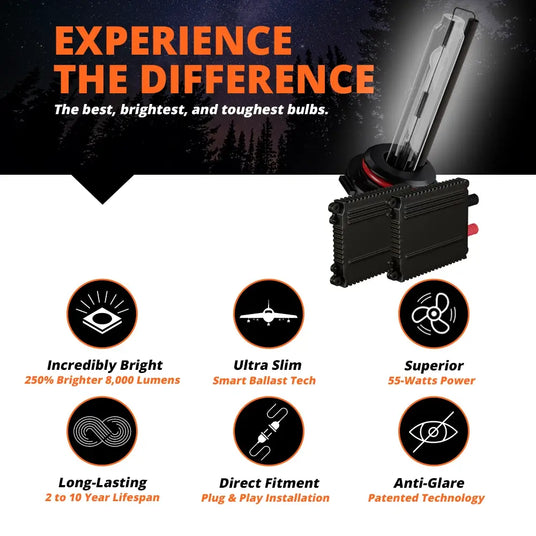 Actualice sus faros halógenos y bombillas antiniebla con los faros Xenon HID de última generación y de primera calidad, respaldados por nuestra garantía de por vida.