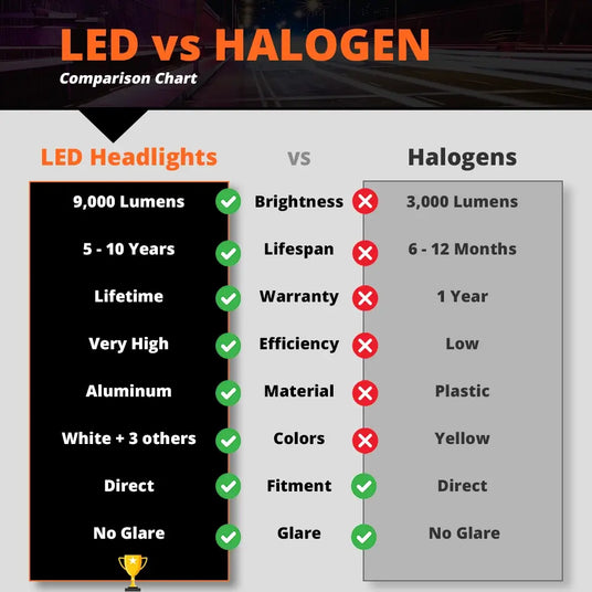 Upgrade your halogen headlight bulbs to the latest-generation, premium LED headlights backed by our lifetime warranty.